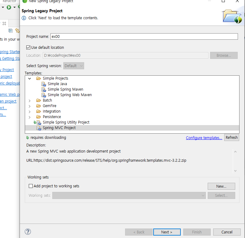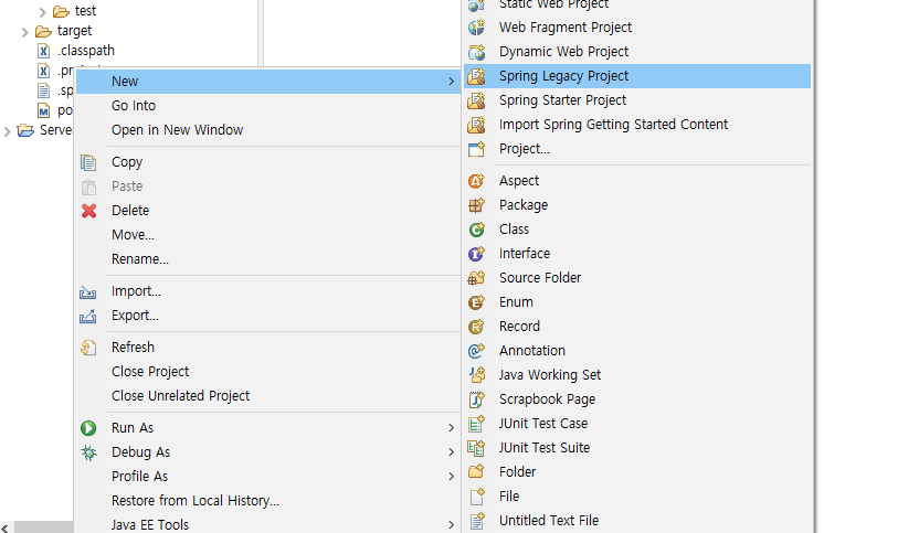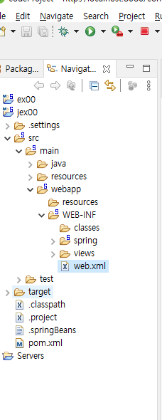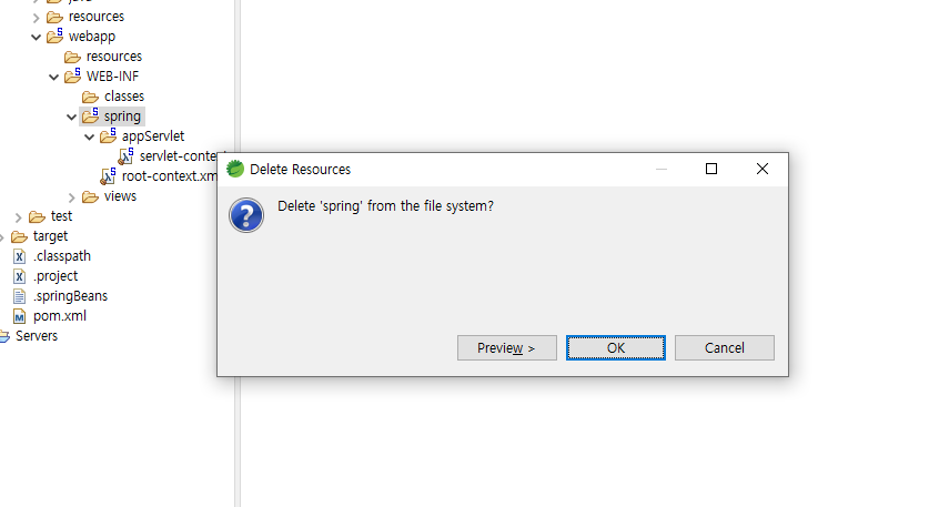 web.xml과 spring폴더를삭제한다.