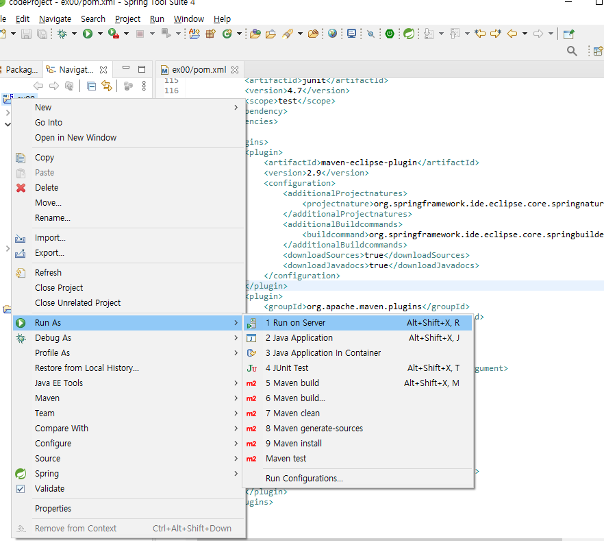 생성된 프로젝트의 라이브러리는 pom.xml을 통해 관리한다.