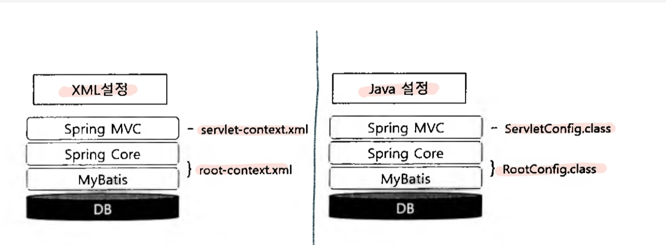 Java설정의 경우에는 ServletConfig.class 와 RootConfig.class를 이용한다.