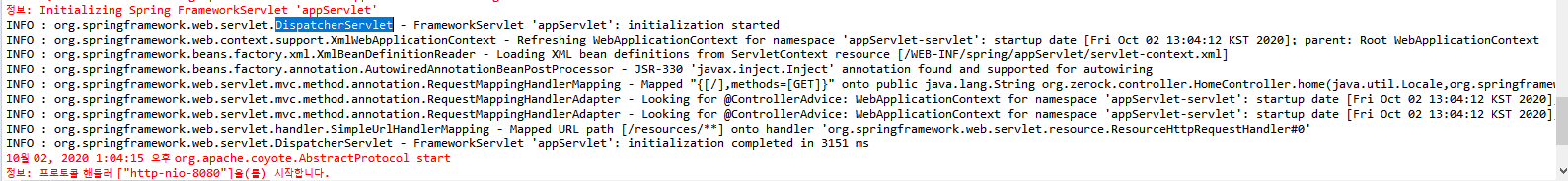 DispatcherServlet이라는 서블릿과 관련된 설정이 동작한다.