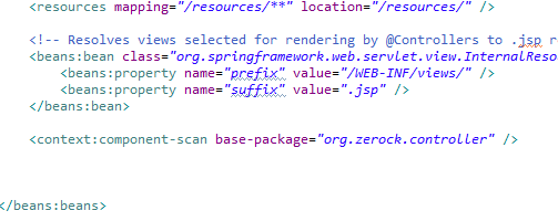 이것은 servlet-context.xml의 아래 설정과 맞물려 URL경로를 View로 처리하기 때문에 생기는결과 이다.