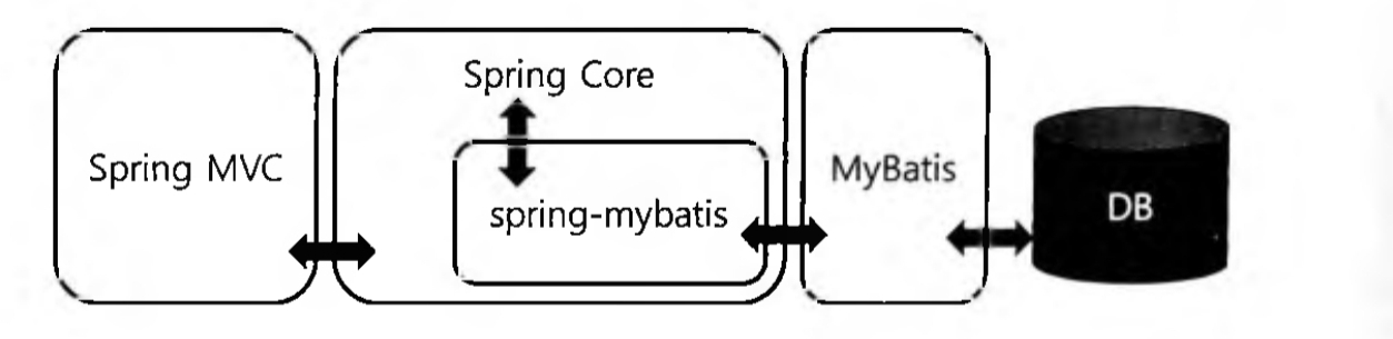 Mybatis영역은 현실적으로는 mybatis-spring을 이용해서 구성하는 영역. SQL에대한 처리를 담당 하는구조