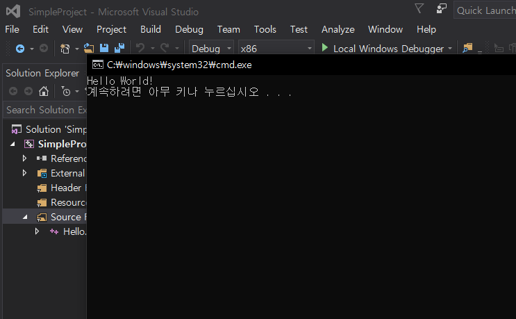 이제 프로그램을 실행해 보자 단축키 Ctrl +F5를 눌러 실행결과를 확인하자.