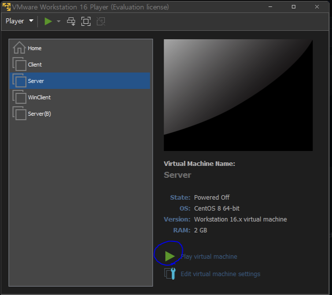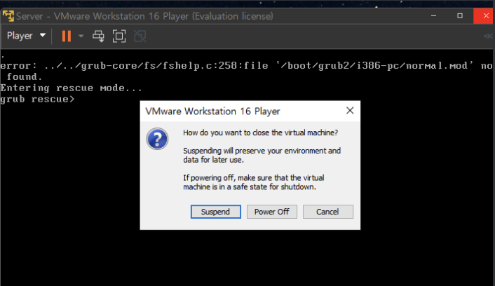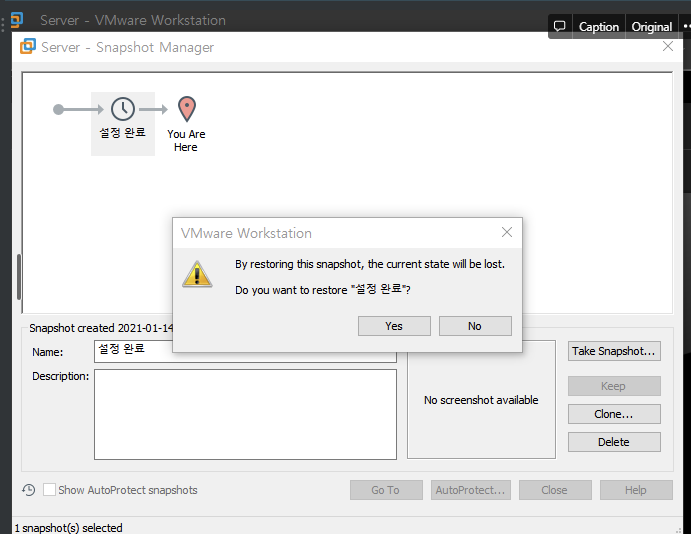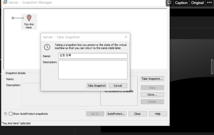 vmware player에는 스냅숏 설정이 없으므로 닫고