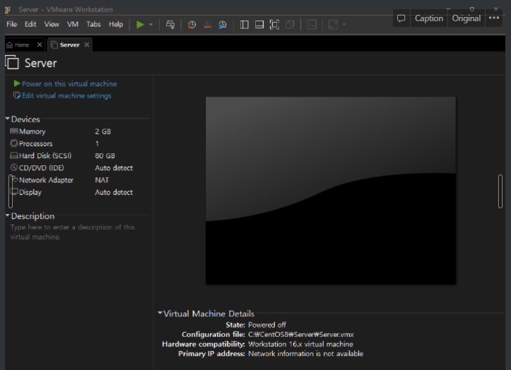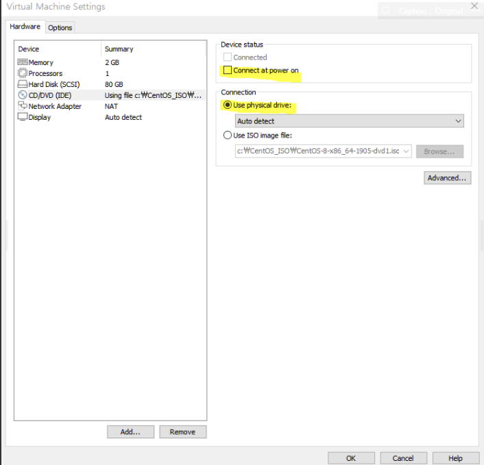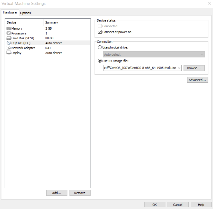 edit vitual machine settings 클릭