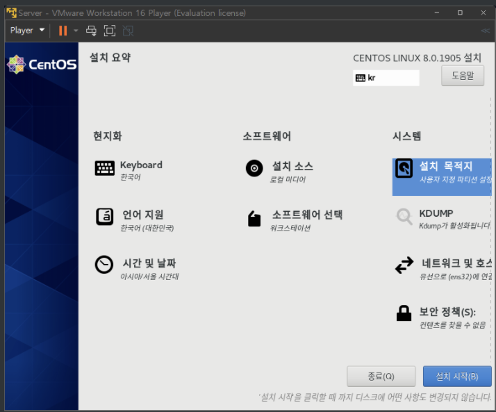 (변경사항 - 시간및 날짜, 설치소스, 소프트웨어선택,설치목적지,네트워크및 호스트)