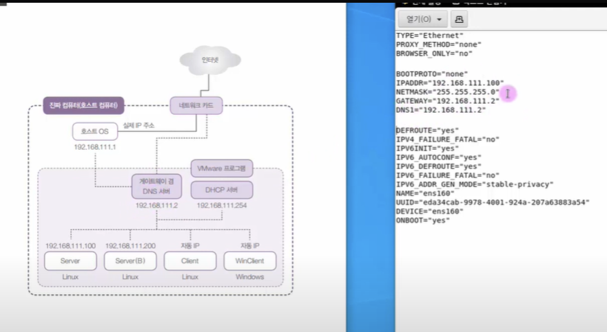 서버 컴퓨터의 네트워크를 고정 ip로 설정한다.