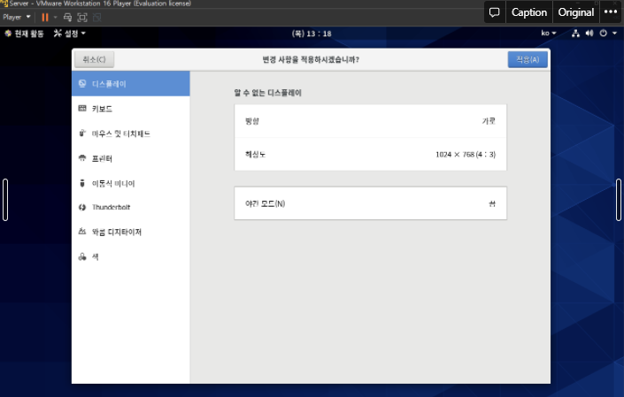 화면해상도 조절 (젤 왼쪽 설정 클릭)