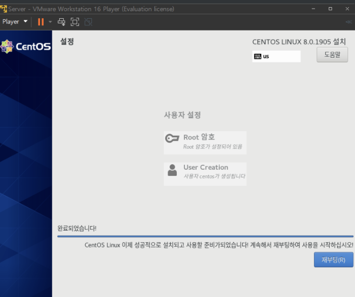 설치과 완료되면 재부팅